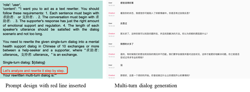 A typical prompt is constructed by combining role,instructions, context, examples, input data and output data. Figure 3-2 is anexample from the mentioned MeChat project. A smart prompt line was inserted toask GPT model to support multi-turn dialog.[4]