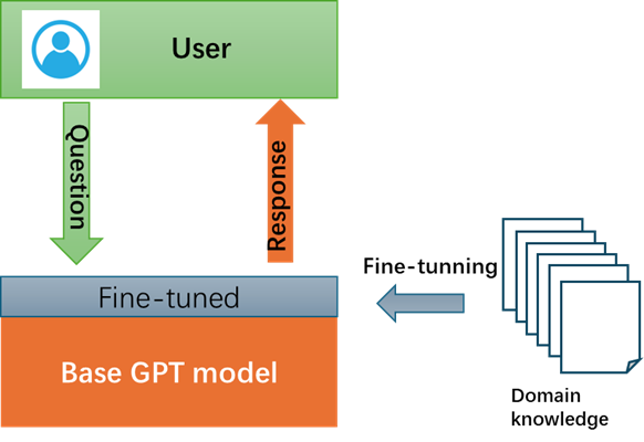 Figure 3-5 GPT model fine tuning 3.3 Fine tunningThereis no parameter changed in the prompt engineering and RAG method for the existGPT model. If the domain knowledge is too large to input as prompt and RAG, afine-tuning technology should be used on the GPT model. In this situation, partof parameters of the GPT model will be fine tuned again, and this may cost muchcomputer resource and time. Figure 3-5 shows the model fine tuning. Fine-tunemodel means change original pre-trained parameters. 4. Experiments4.1 Preliminaries4.1.1 Access to base LLMsIn recent years, the large language models have been developed rapidly.Many popular models appear from both international and domestic. The mostpopular LLMs are listed in table 4-1 below. Table 4-1Most popular base LLMs